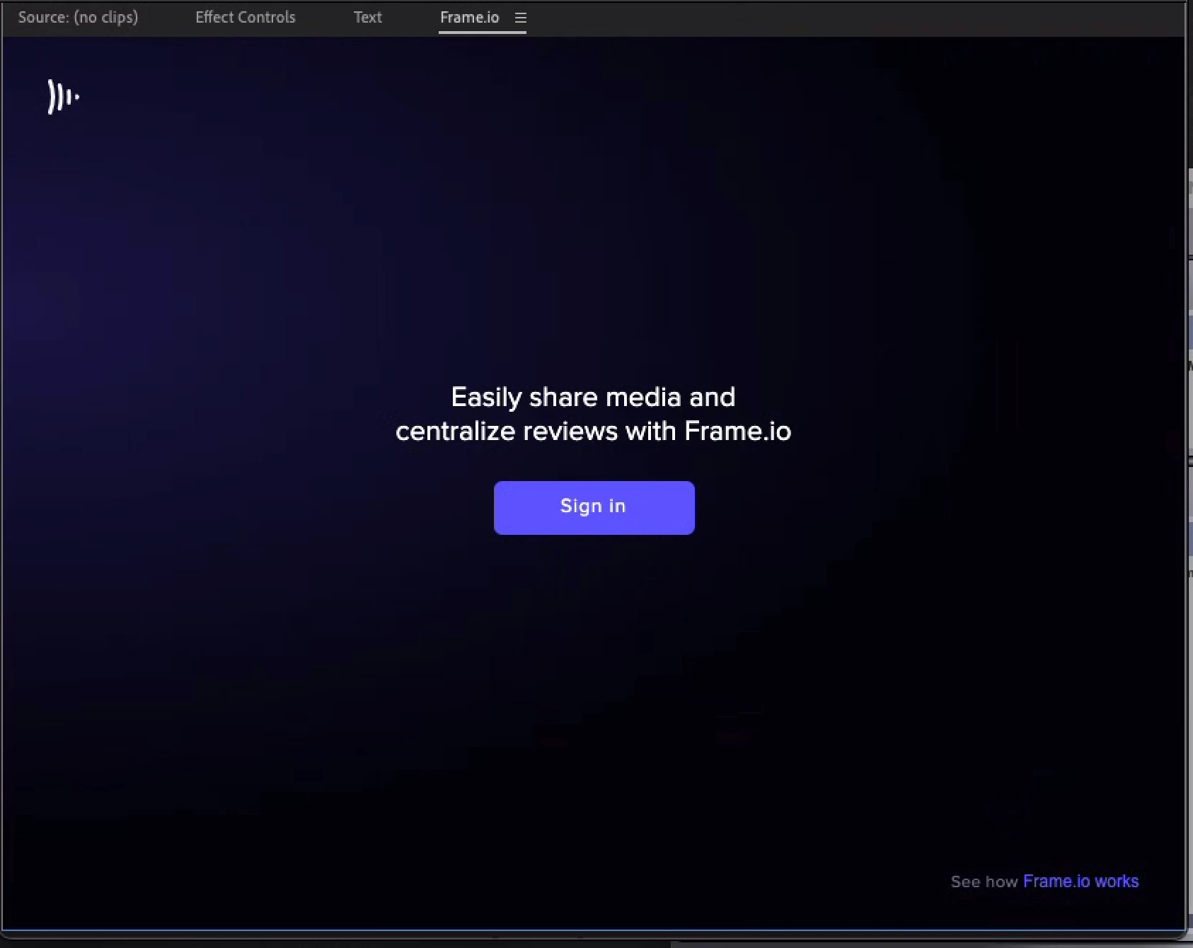 How to reset sign-in Frame.io panel in Adobe PP