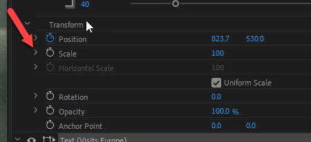 How to separate scale X and Y properties in essential graphics in Premiere