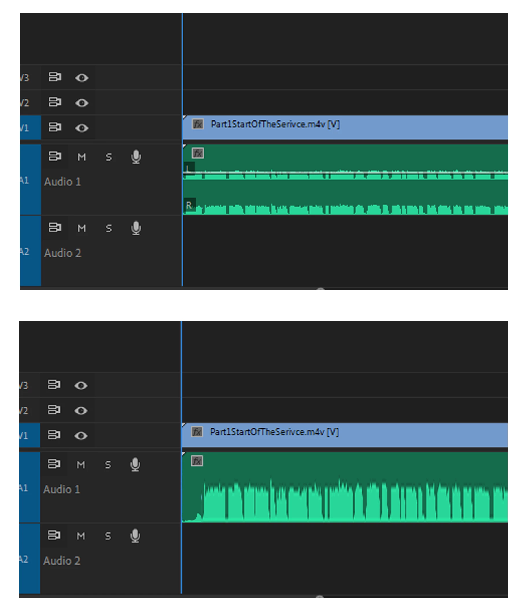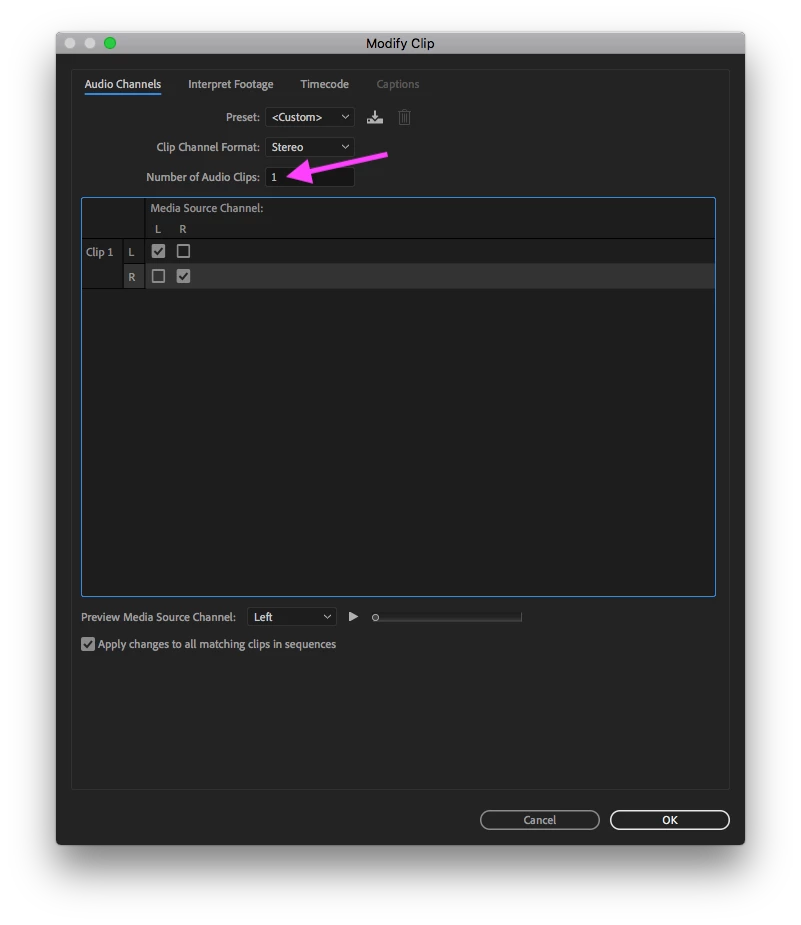 I use Premiere Pro maybe once a month to edit small videos, and when I booted it back up again today I noticed my clip has two waveforms underneath it, one for each audio channel. I know (and just checked) that most of the clips I have worked with in the past have 2 audio channels in them but I don't remember it displaying both audio channels in separate waveforms on the timeline. I've searched online for an hour now and I'm not sure if I'm miss-remembering that it used to only display a single waveform (supposedly representing both audio channels or maybe just one of them). The way it is now I have to enlarge each audio track much more than I have screen real estate just to visually see my audio track (I find this very useful for finding certain sections of videos). Is there a setting to display only a single waveform per clip?