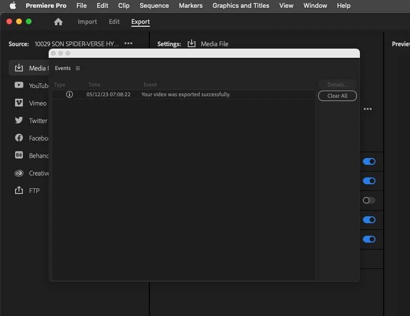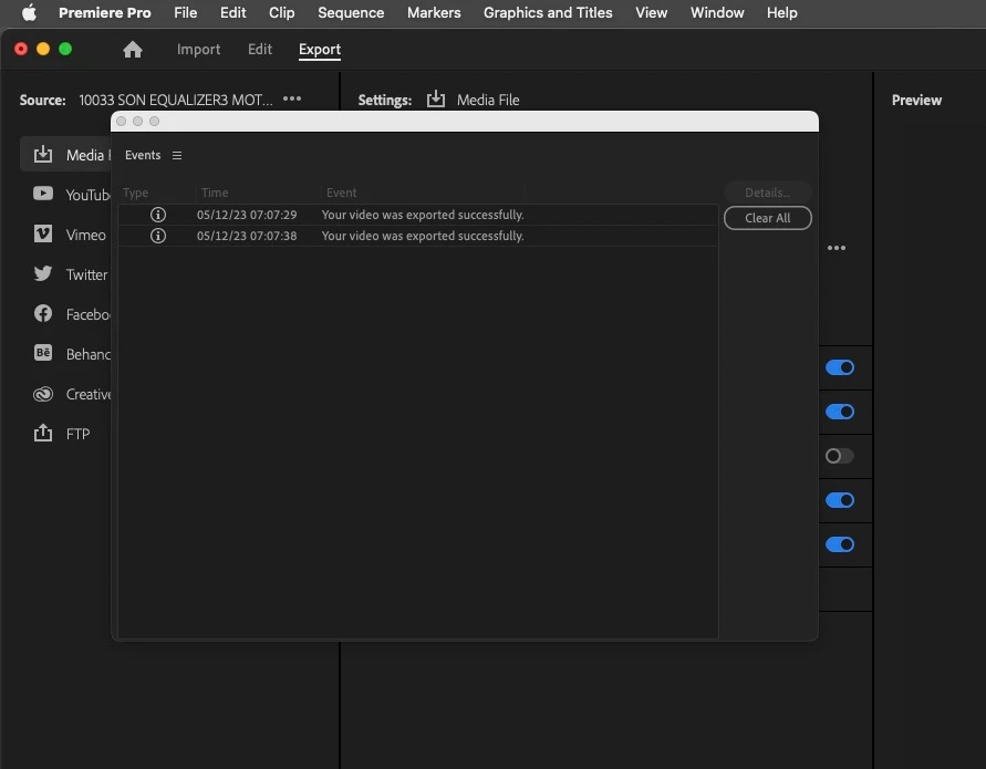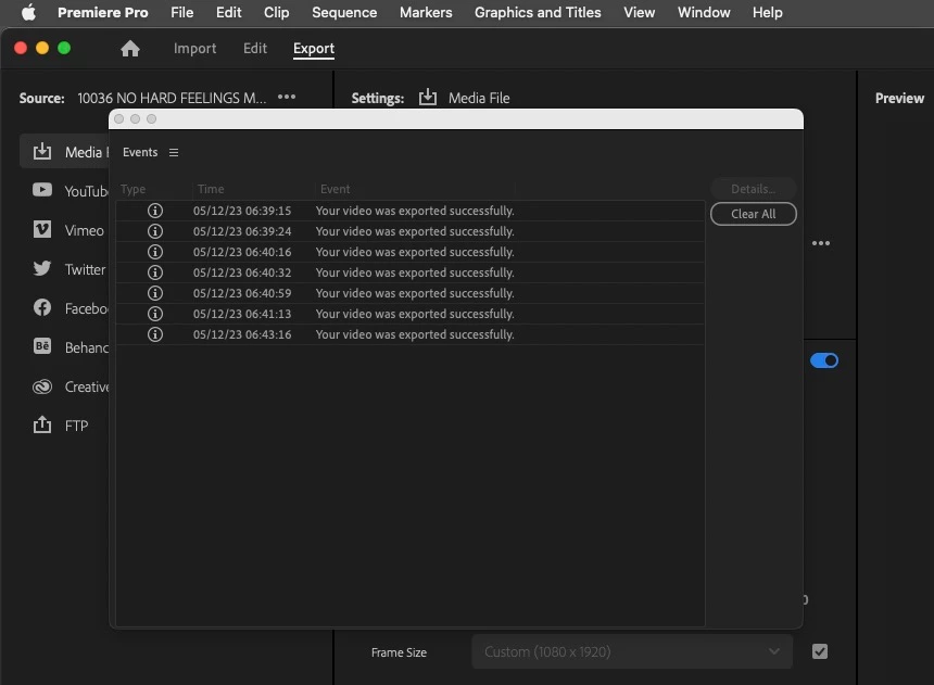 When I move towards the export button, a pop-up displaying previous exports often interrupts the button press (see attached for examples from various projects).