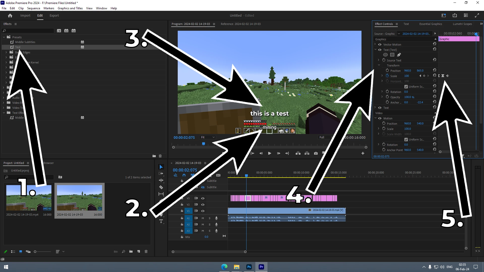 Arrows 2 and 3 show the exact problem that I have, as you can see with arrows 4 and 5 the only thing changed with keyframes is "Scale" (Source Text) was not touched, yet when I apply the presset it messes everything up.