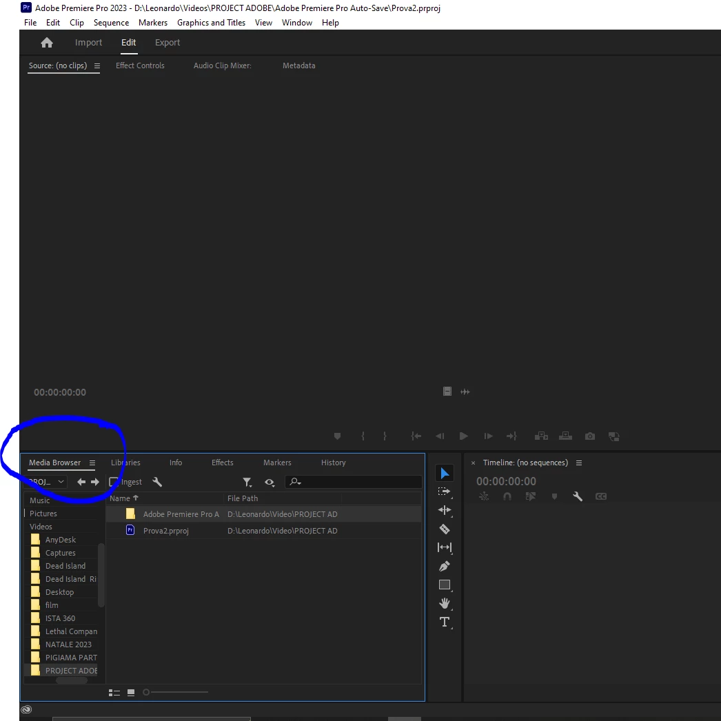 I have the latest version of Adobe, I'm new to the software and I'm learning to use it. I don't understand why when I create a project in an empty folder, when I open it, in the project panel, I don't see the section in front of "media browser" where the "project name" is and you can create bin folders. But if I create another project inside the same folder, in the second project I see the section in front of "media browser" with the name of the project and where I can create the bin folders. I don't understand why, thanks for the help