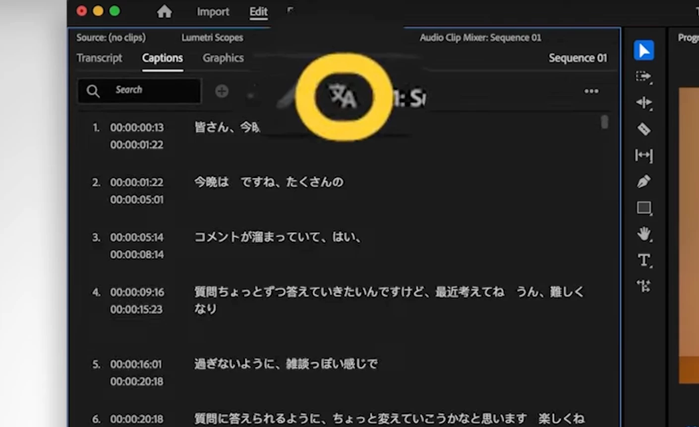 I can't see the translate captions button in premiere pro 2025