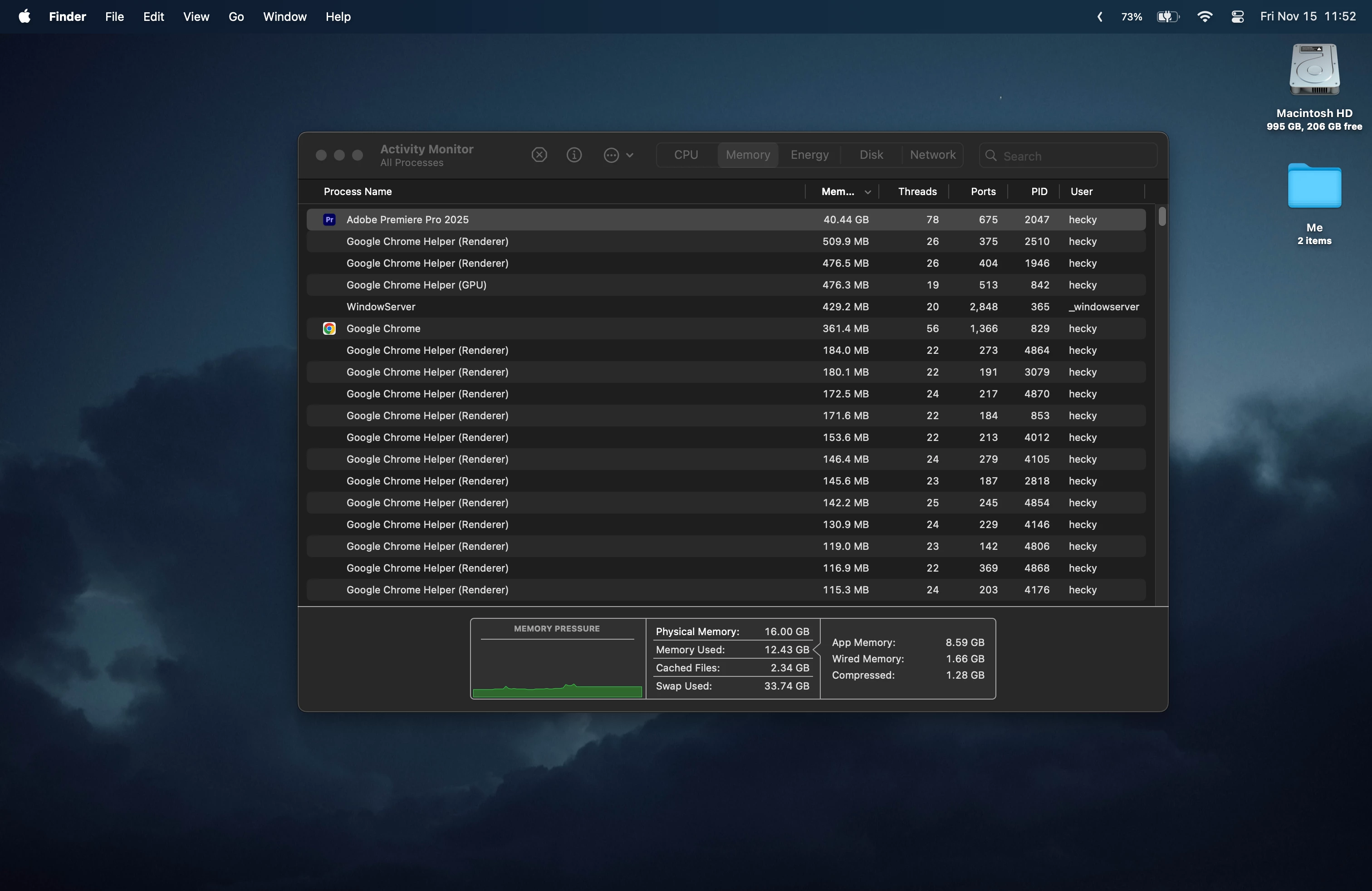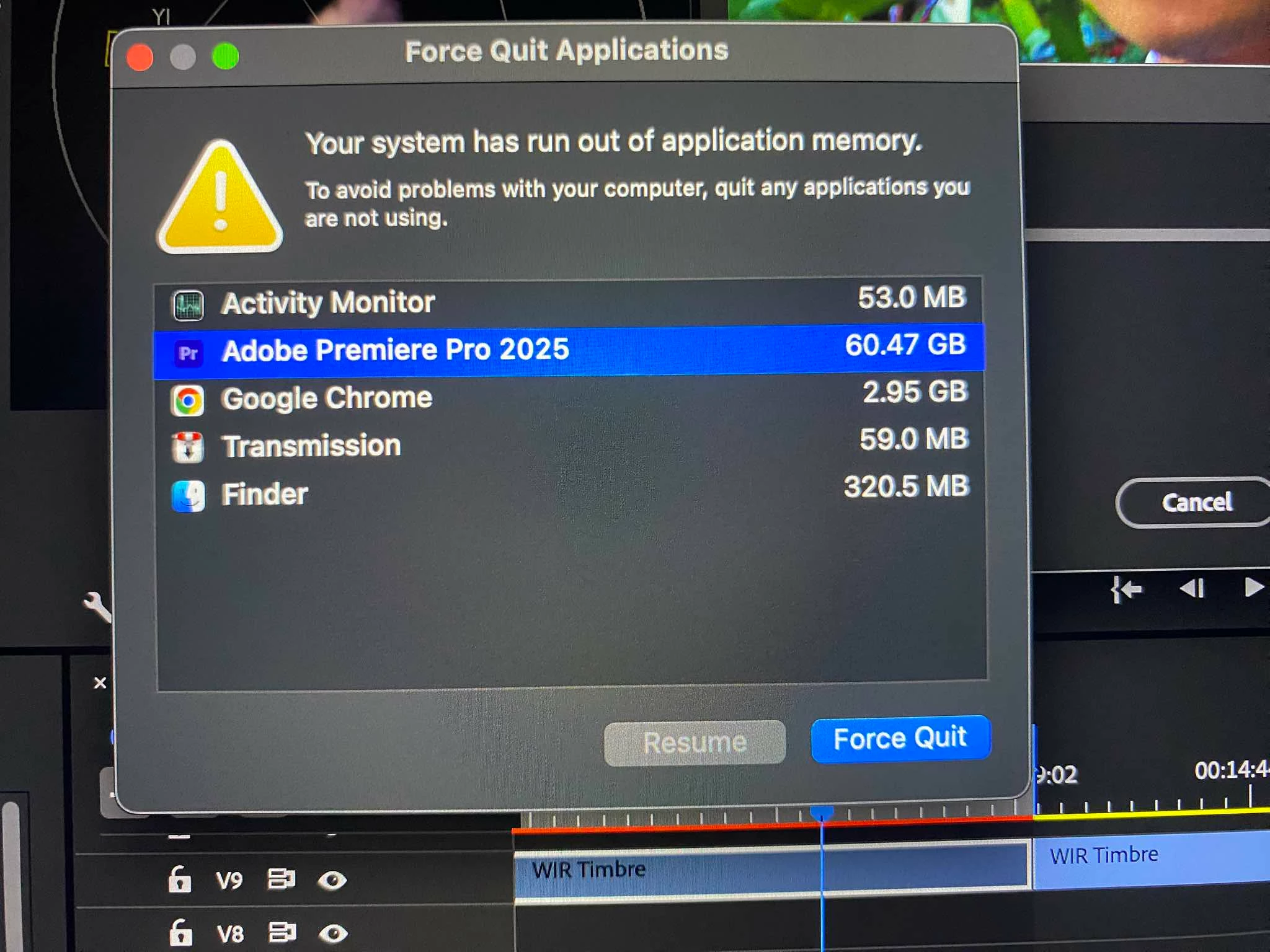 Also, potentially, there could be interactions between Google Chrome, and those Google Chrome (renderer) tasks you see under PPro; PPro hosts panels using Chromium, the open source browser engine behind Chrome. It would be interesting to know whether you encounter memory problems, if you don't have Chrome open at the same time.