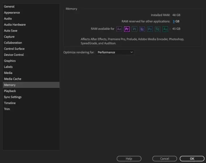 I dont have the "Optimize rendering for" option under Memory