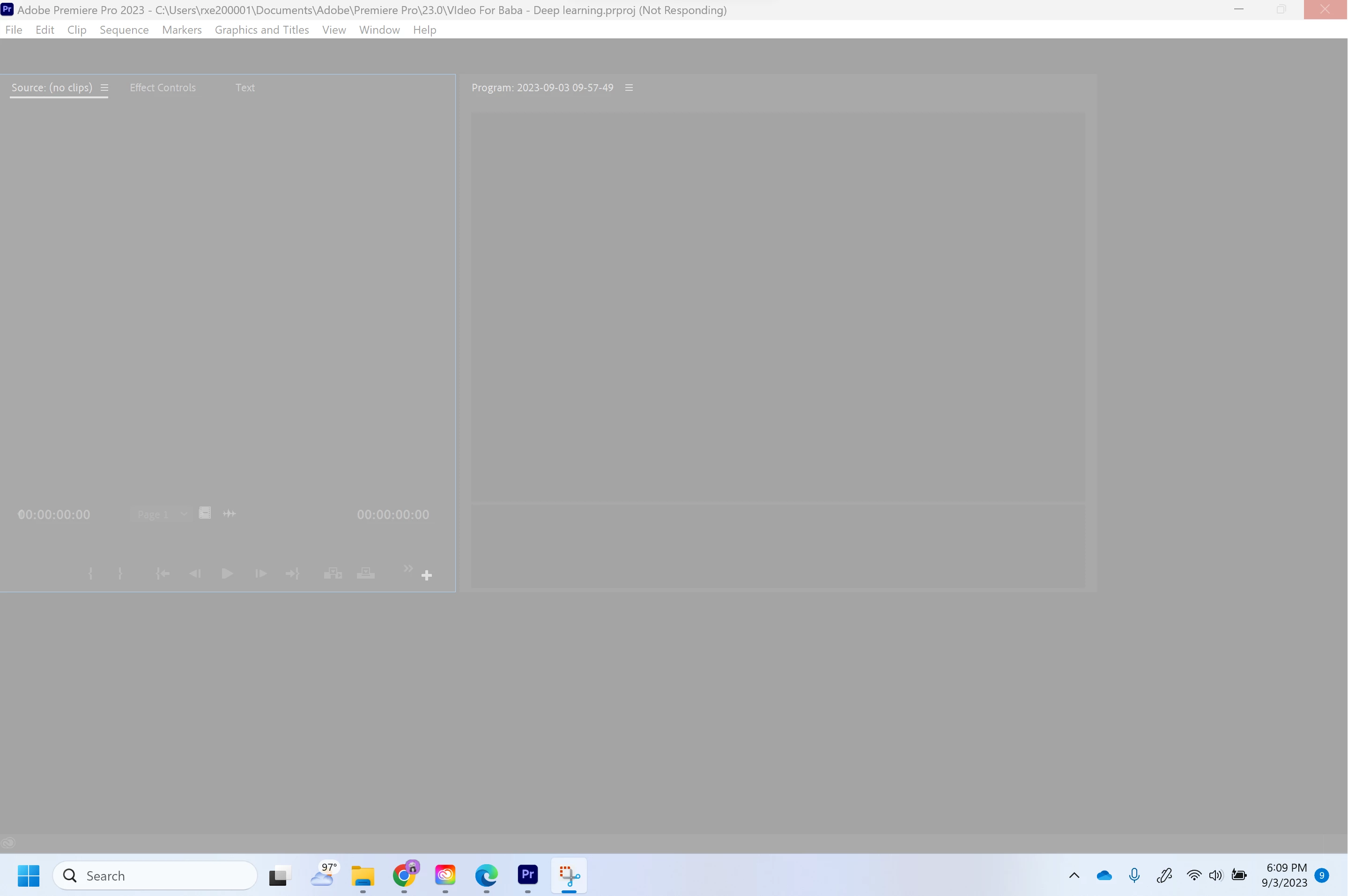 I recently got a Surface Pro and I decided to edit a video on it using Premier Pro. It was working perfectly and after a bit I decided to take a break so I saved the file and closed all the apps open on the laptop. After a few hours I came back and when I launched the project I was working on previously it just glitches out and says "Not Responding". I left it like that for 20 minutes and it still had not changed so I closed it and restarted my computer and it still did not work. I went into task manager and closed anything related and it still did not work. I decided that I would transfer it to another device but when I emailed it to my other device the video was not there in the editing. All the changes a made were there like text but the actual video I had recorded was gone in the background. It seems it did not transfer properly. I wanted to transfer it using project manager but I could not because I cant access it due to the "Not Responding". So my first preference would be if someone could tell me a solution to why it says "Not Responding" whenever I launch the project but if not is there some way for me to transfer the project while still including all the changed made on the base video of. Hopefully there is a fix. I tried researching it and all the fixes I found were unapplicable or not working. Please help me as soon as you can.