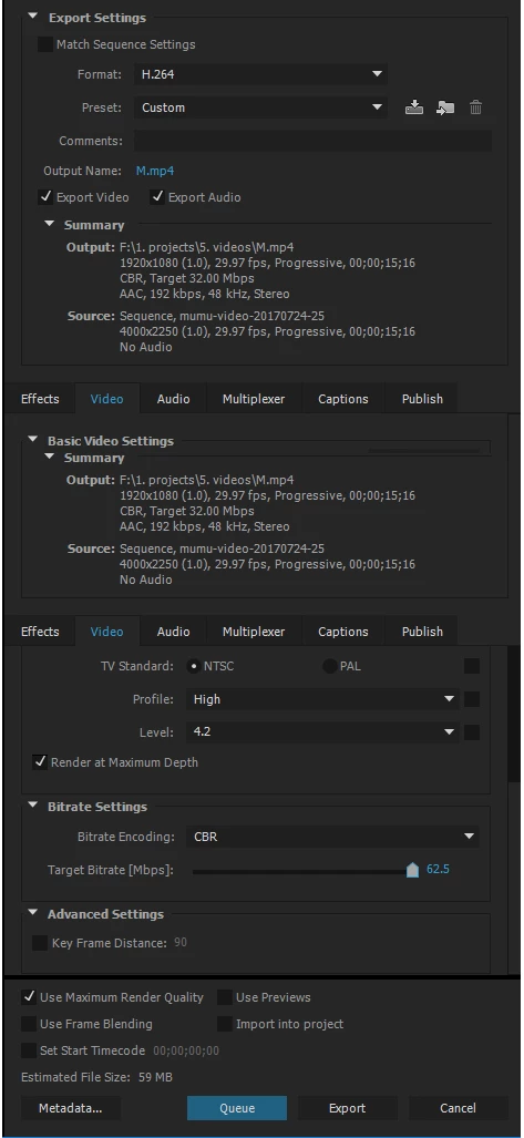 I created a sequence with high resolution jpg images in premiere pro CC 2015, but when I export it, no matter how I adjust the export setting, the quality ends up really bad. (Please see the image comparison and my export setting below.)