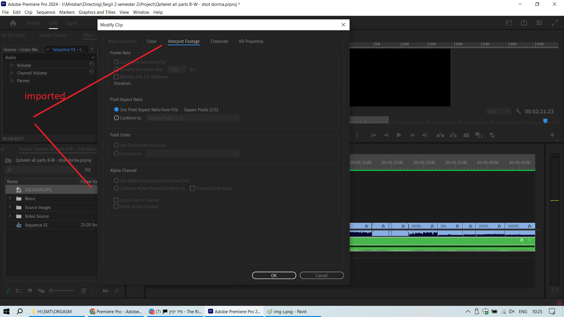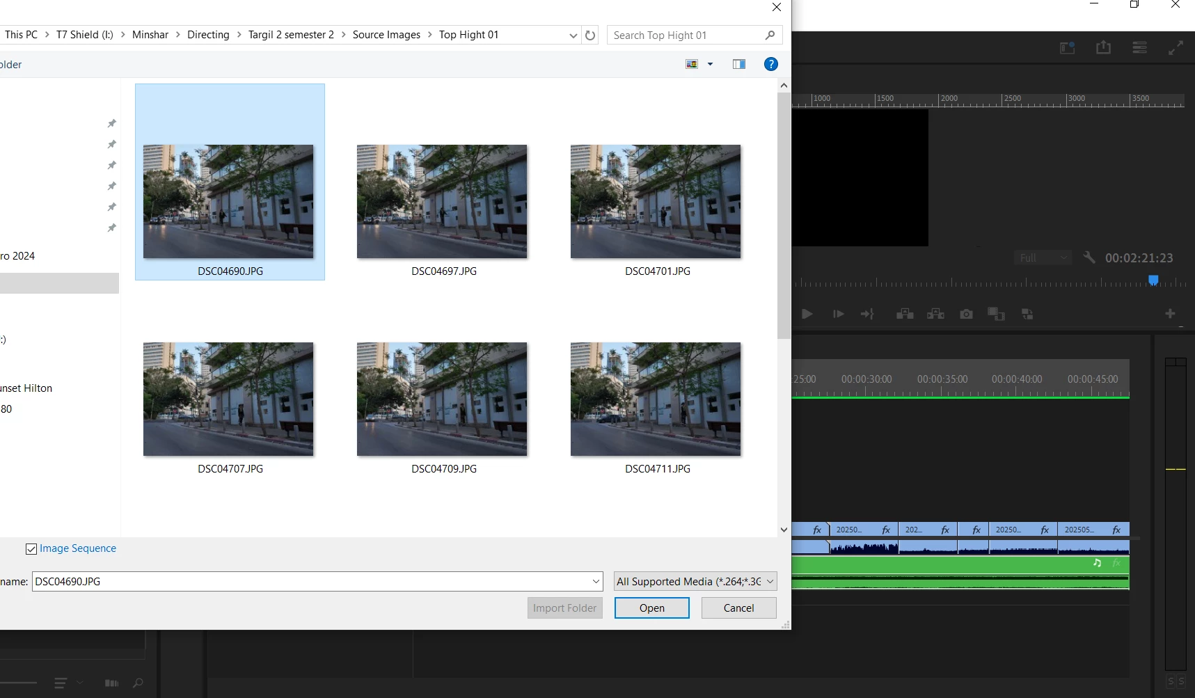 Premiere Pro will only import images as an image sequence if the filenames are numbered sequentially with no gaps—for example, DSC04690.jpg, DSC04691.jpg, DSC04692.jpg, etc.