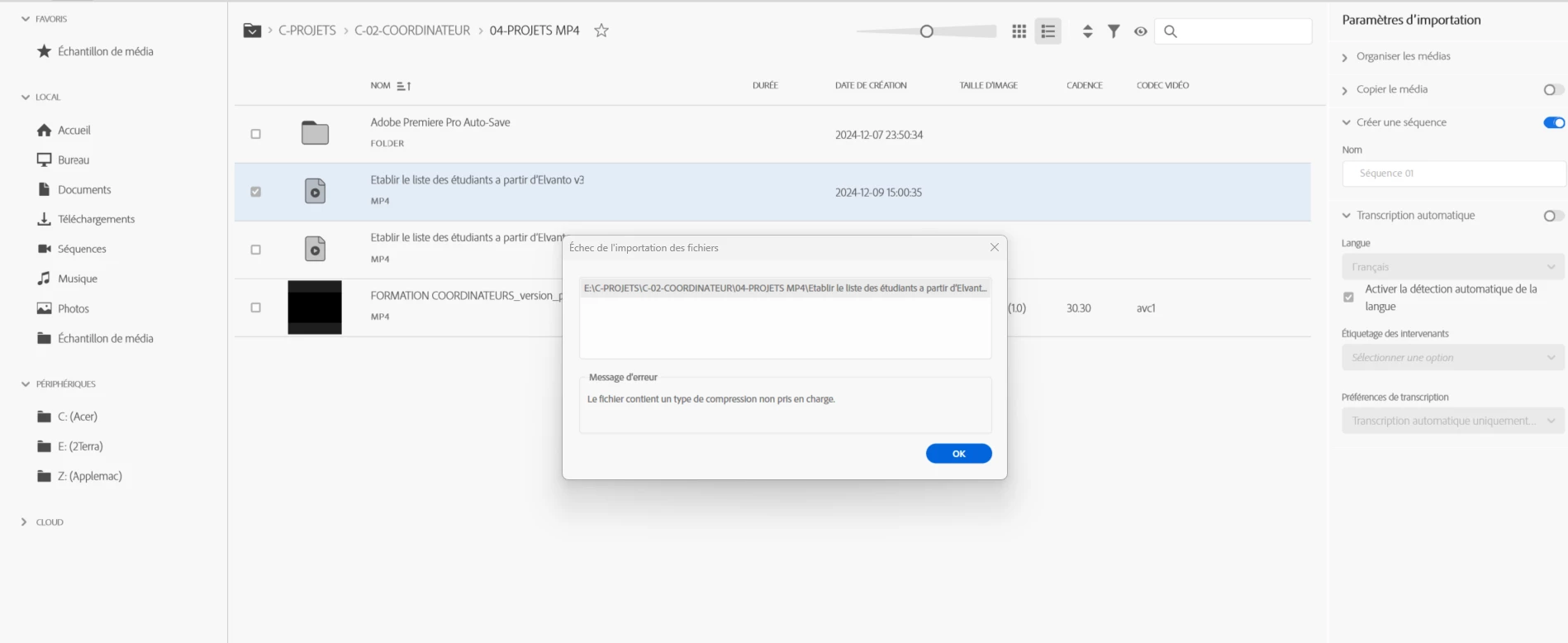 J'ai réaliser un Pwpt, exporter au format hd. Je veux le charger sur Prem pro et j'ai ce mssage.