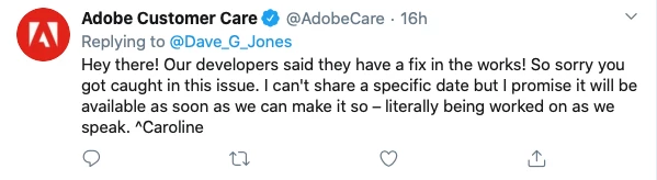 Update from Adobe on Twitter: