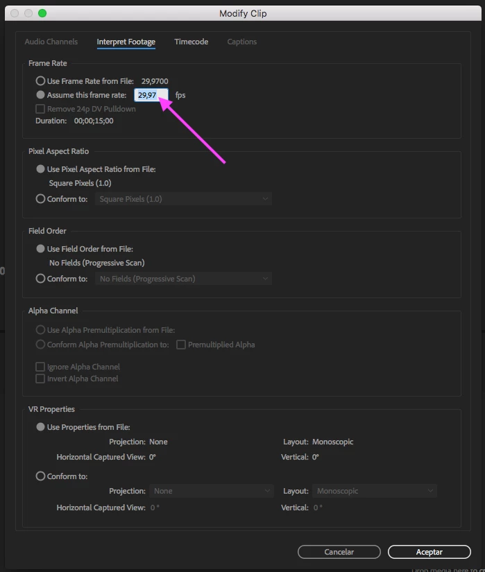 Imported file changes frame rate