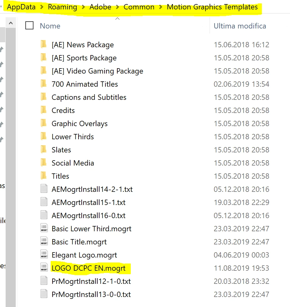 How I make it visible? When I charge an another time the template, a warning window appears and tell me “Are you sure you want to overwrite the myfile.mogrt template?”