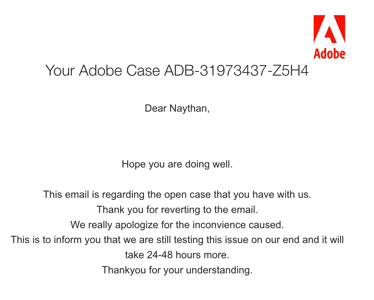 From there the Agent said he would get back to me via email on an update, not sure how long until they can find a solution to this. Hopefully soon. If someone has encountered this issue & found a temporary solution please let me know as we all know how long Adobe can get a fix around this!