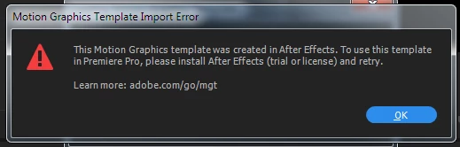I save and export a "Mogrt" Template to a local drive (or a library, results do not vary).