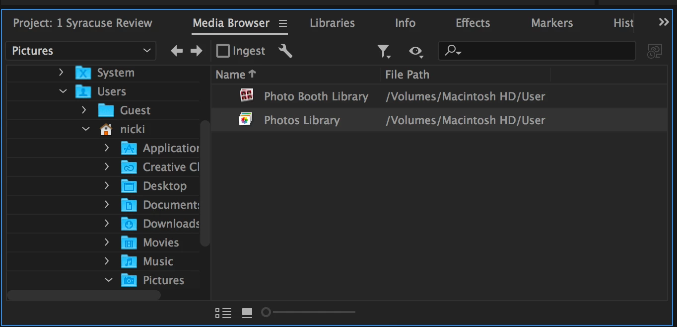 I'm new to Rush and Premier pro.  I'm trying to find my videos from Photos.  I have the Media and photos, but when I look there, the photos file isn't showing.  I also have lightroom in the same file and when I click on it, it shows "Nothing to display".  This is so frustrating.  As a user, I shouldn't have to jump hoops to make things work.  It seems like Adobe isn't supporting MAC at all.  This should be easy.  ABOBE people, what are you doing about this?