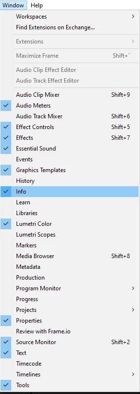 Depending on where the Info Panel is docked, it does lose the little tab. But if you grab it just at the tippy top in the upper left-hand corner, you can click and drag it to another panel. Depending on where you dock it, like say you dock it with the Effects tab or something like that, you'll see the Info tab pop back up. And if you want to close it, you can just hit Ctrl or Cmd+W, and that will close it when it's selected.