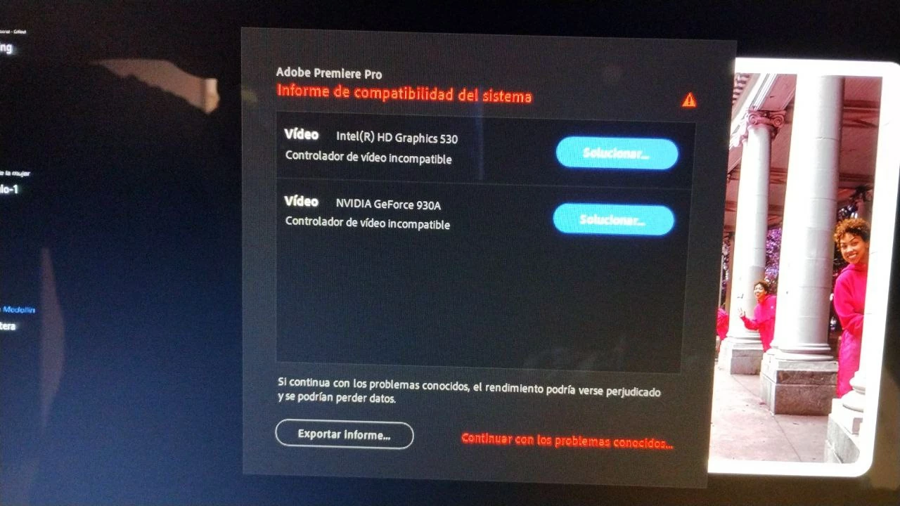 acudo a ustedes para saber si existe alguna posible solución a este error que me genera el Adobe Premiere cuando lo inicio, por el momento he realizado lo siguiente: