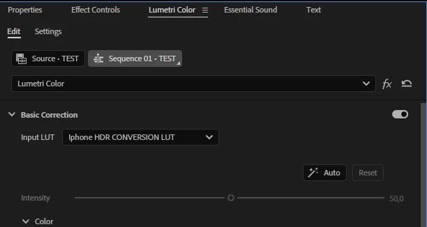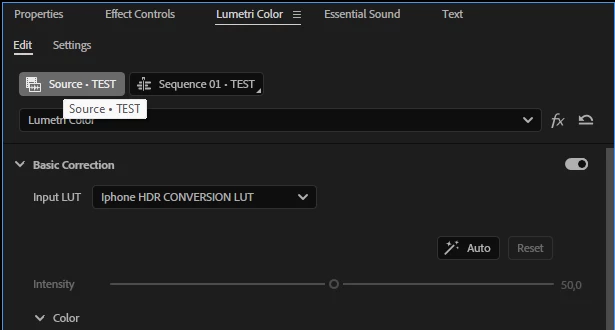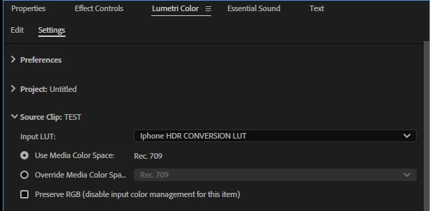 Input Lut in Source Clip, Edit and Settings of Lumetri Color - THREE OF THEM!