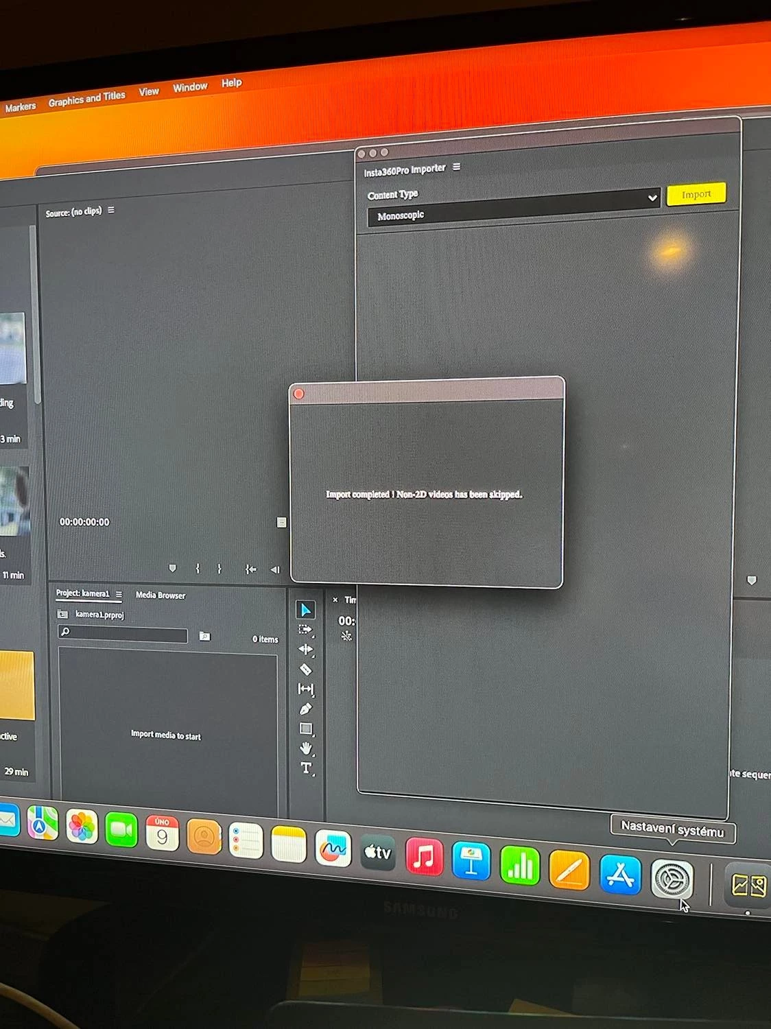 Hi there, i have an issue with insta360 plugin. My device is Mac mini 32GB M2...... When i try upload my videos from insta360 pro2 i just have a answer: "Import comleted! Non-2D videos has been skipped." and thats all. I donť have reached video in premiere. My project is still empty. Do you know how i can fix it?