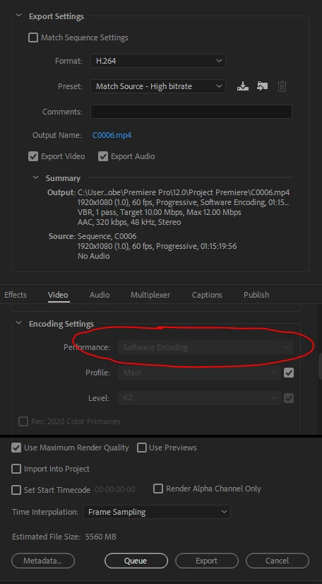 I'm also have a other PC have VGA: 1050 ti, CPU: i7 7700, also use same adobe premiere cc 2018 (12.1.2) and this PC can enable hardware encoding.