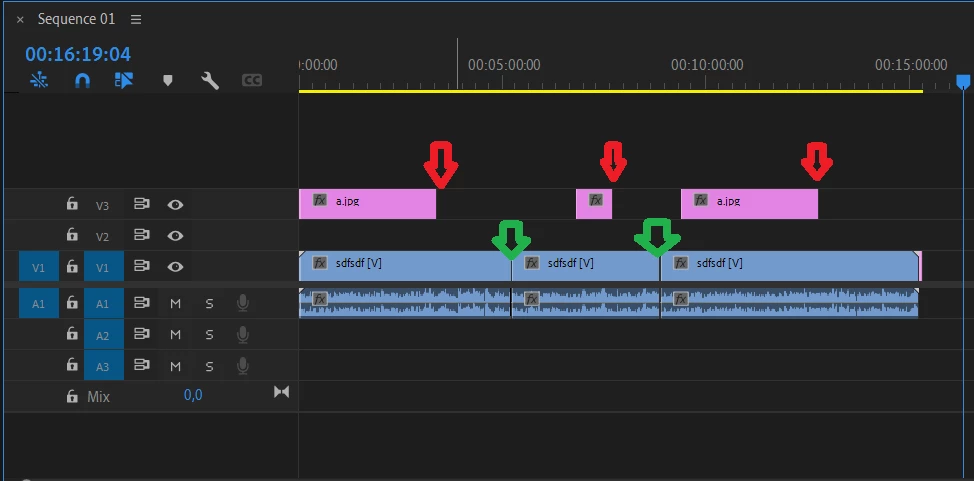 so in this case, the red yellows = end of every image displayed in the video tracks.