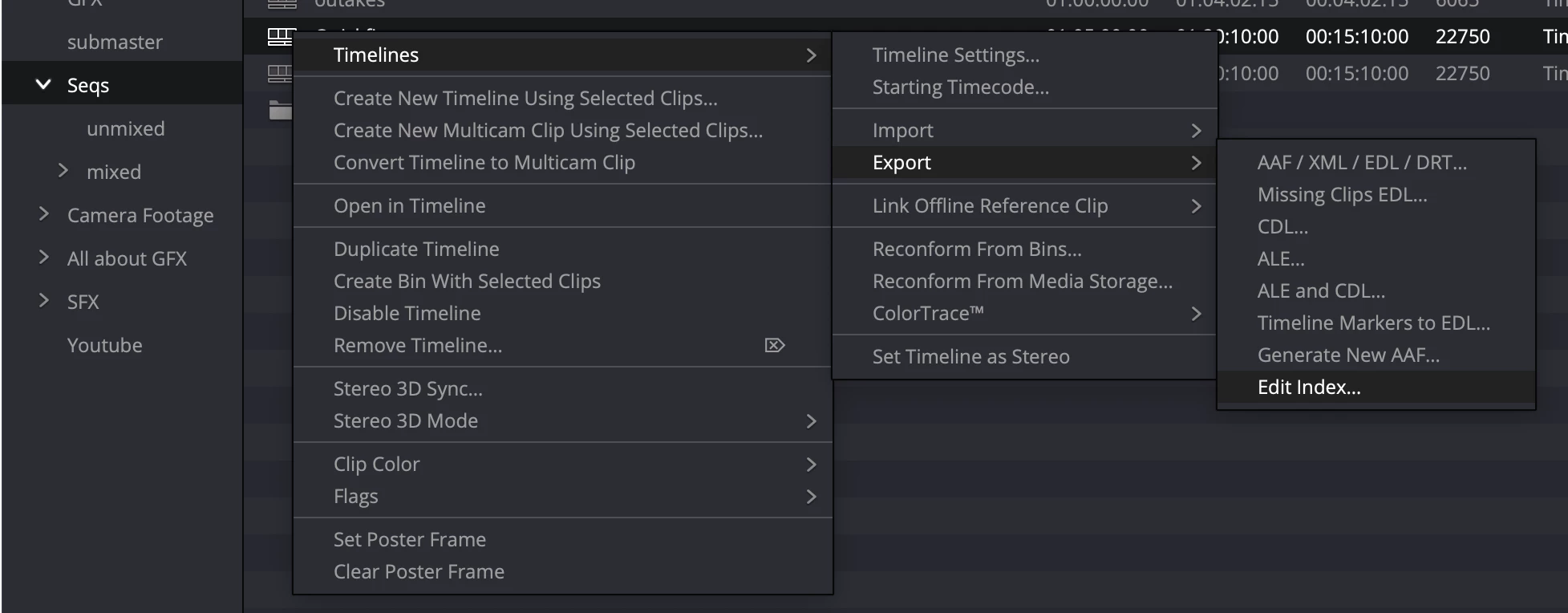 Hey Steve, trying to follow your instructions here but don't know where to find the sequence file. I found the XML in the media pool but there is no timelines > export option there.