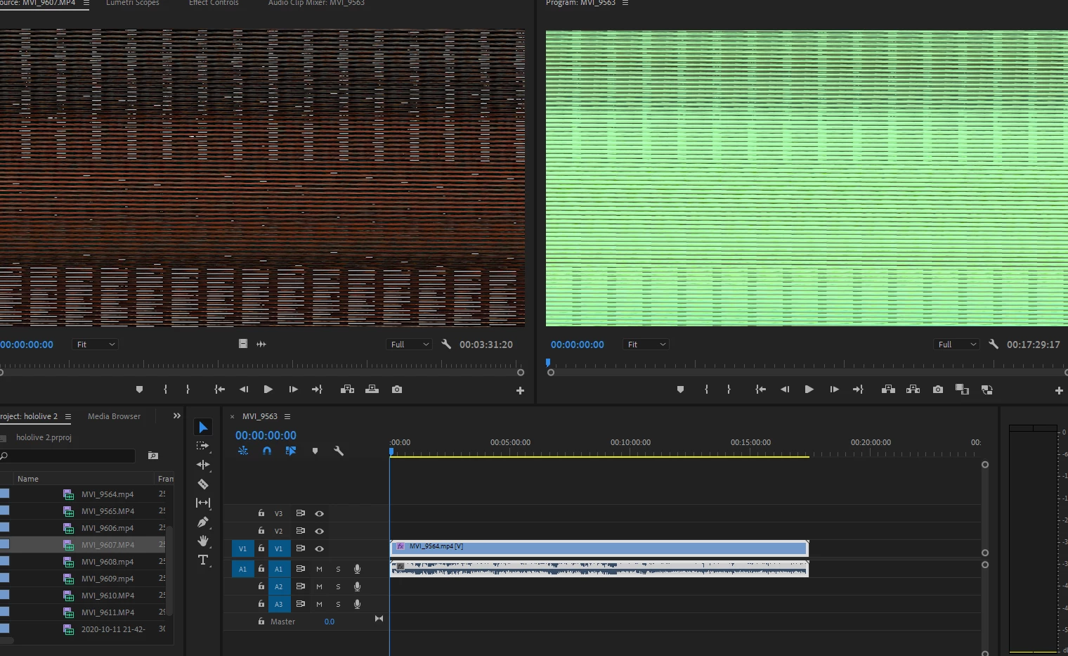 Green-Pink-Purple video https://helpx.adobe.com/premiere-pro/kb/green-purple-streaks-premiere-pro.html