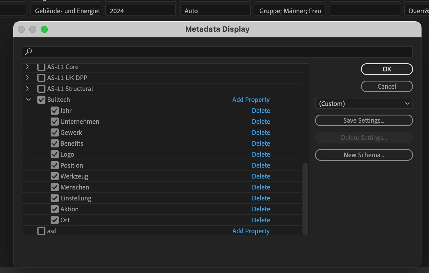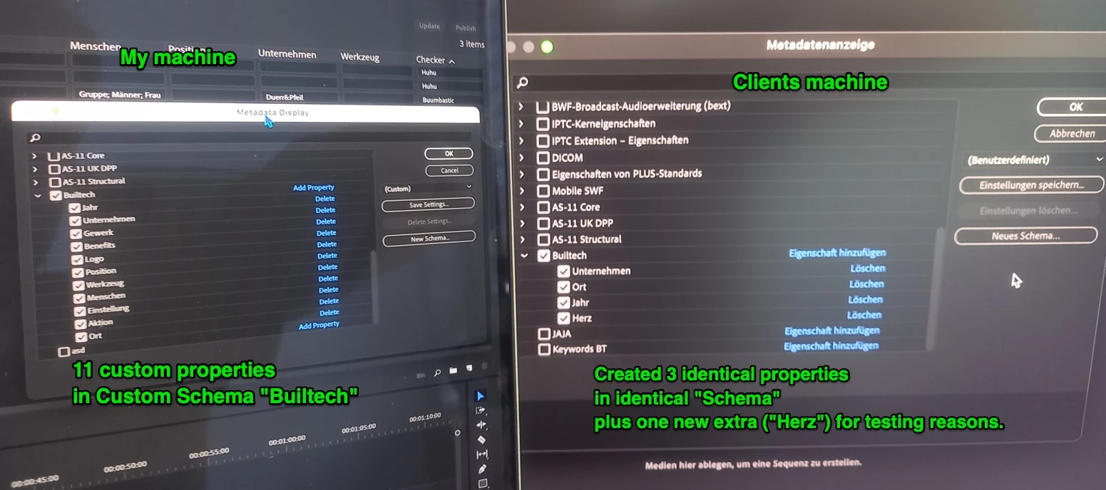 I was assuming, that my custom metadata fields would show up in the project panel as they would on my machine, but they don’t. And I can’t figure out a way, how to make it work.