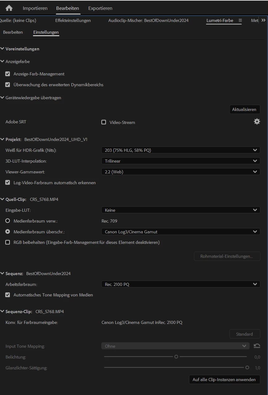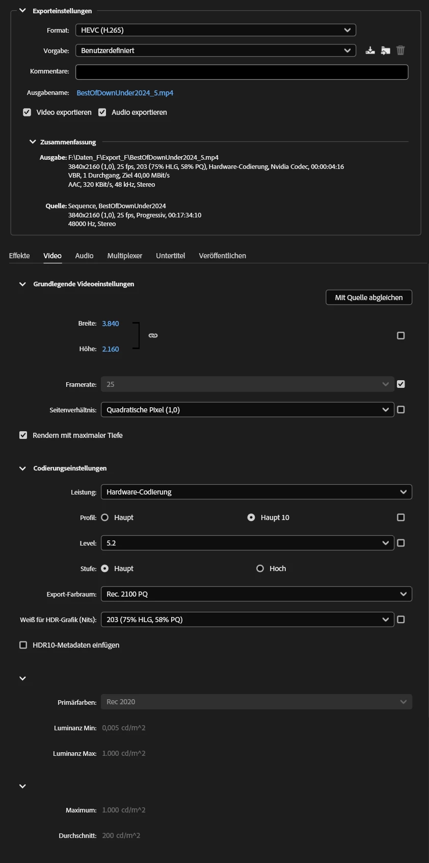 Rohmaterial ist von einer Canon R5 in 8k und Wide Gamu aufgenommen und als solches auch in PP eingestellt. Vor dem Update hat der Export ohne Probleme mit dem selben Projekt funktioniert. Grafikkarte ist eine Nvidia 1080. Treiber ist der 560.81.