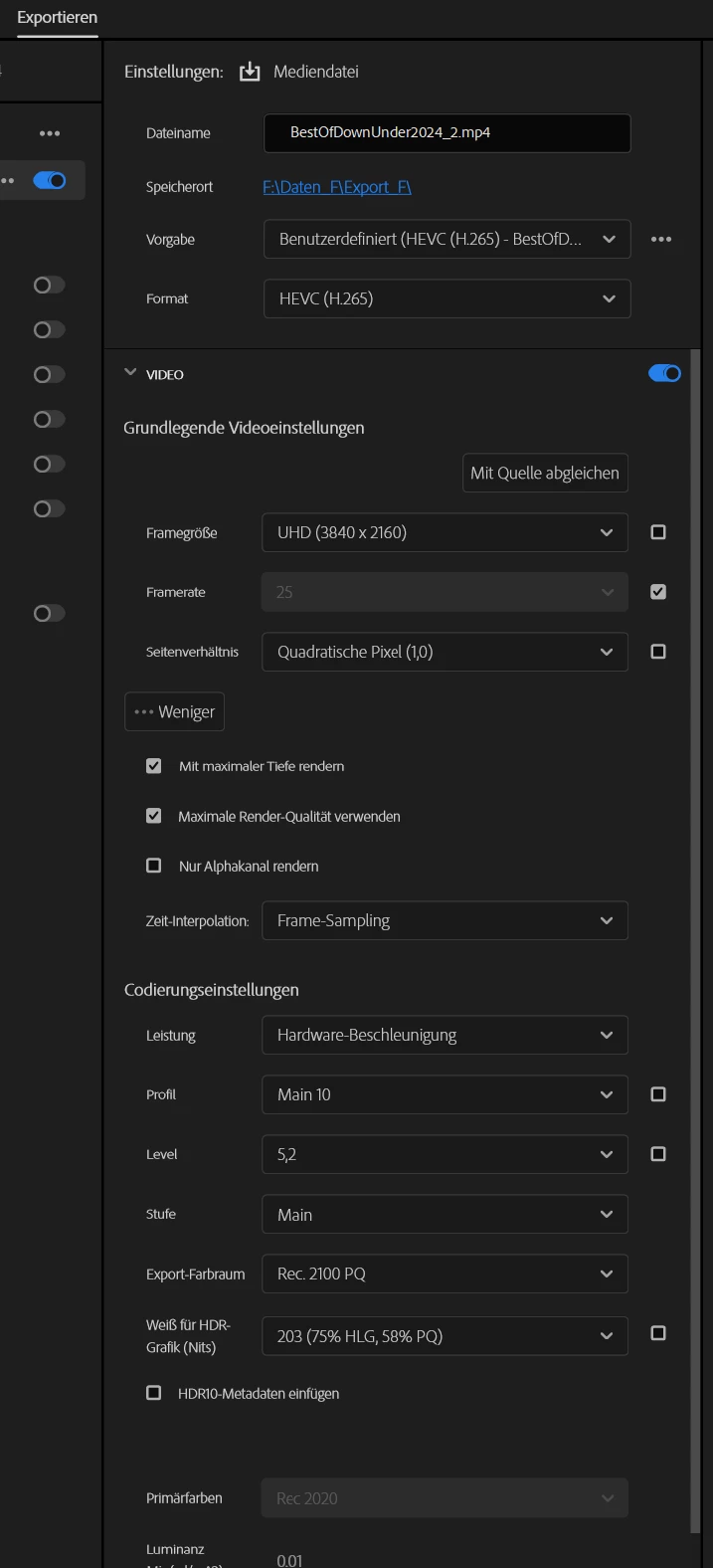Rohmaterial ist von einer Canon R5 in 8k und Wide Gamu  aufgenommen und als solches auch in PP eingestellt. Vor dem Update hat der Export ohne Probleme mit dem selben Projekt funktioniert. Grafikkarte ist eine Nvidia 1080. Treiber ist der 560.81.