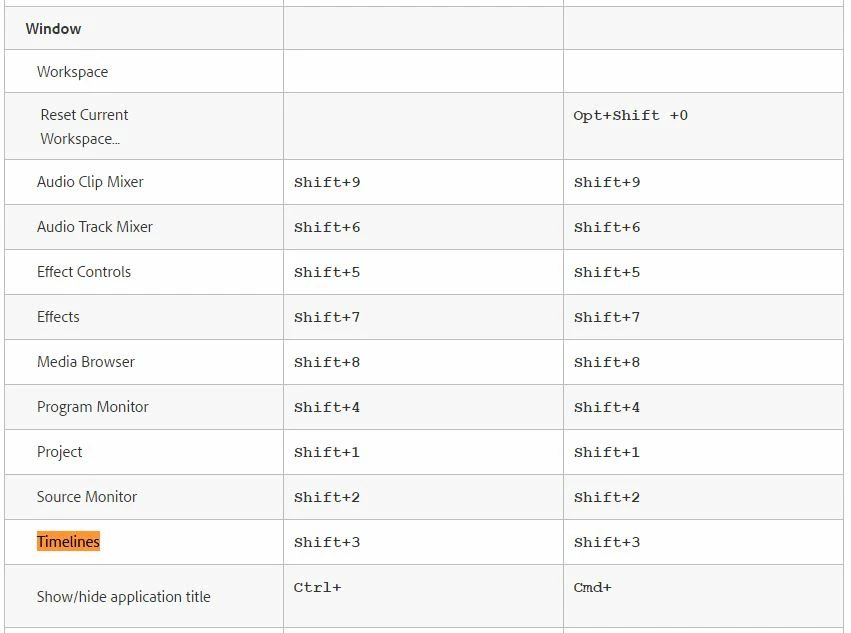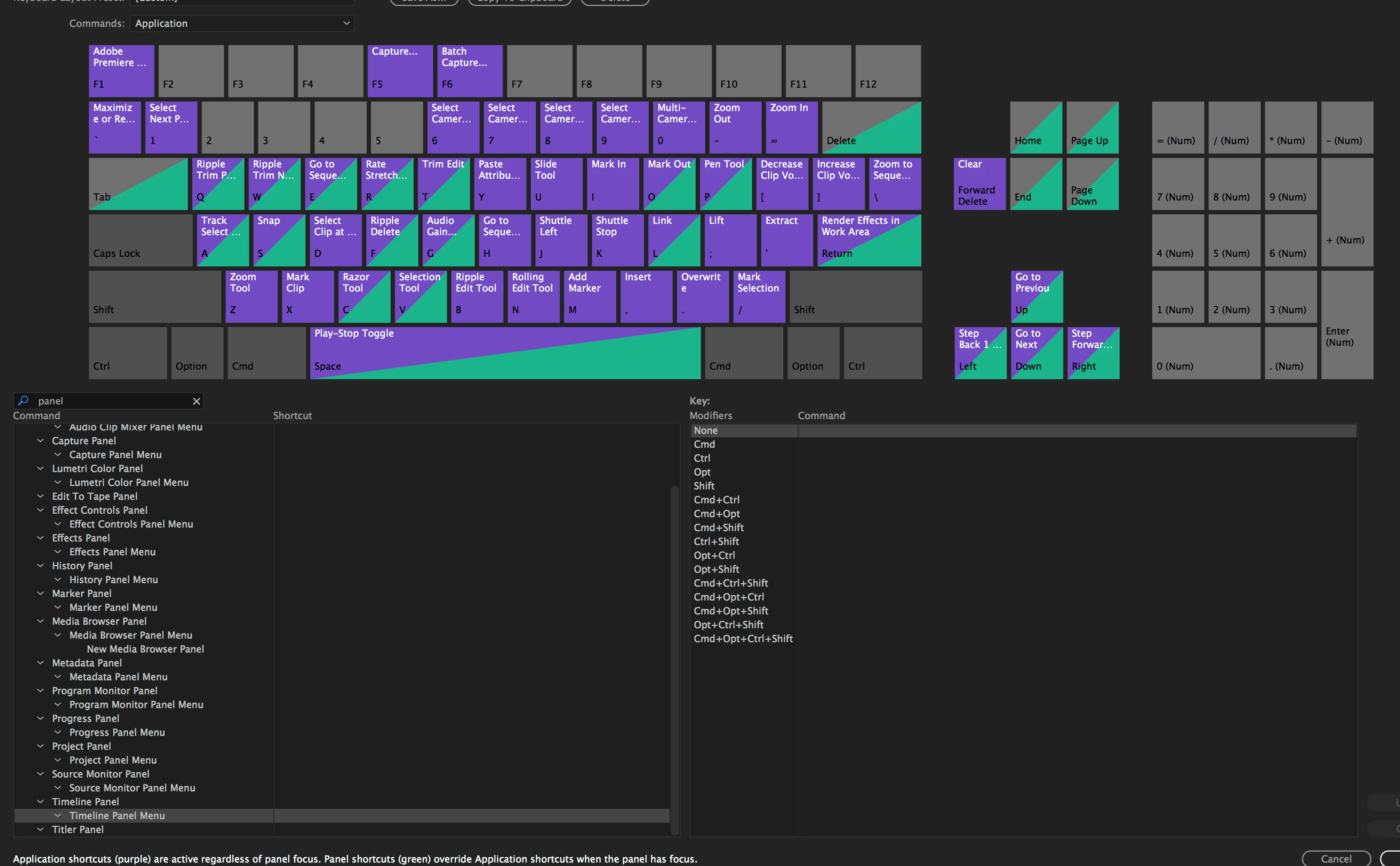Keyboard Shortcut Help in PP2017 - How to customize K.S. for Timeline, Program panels