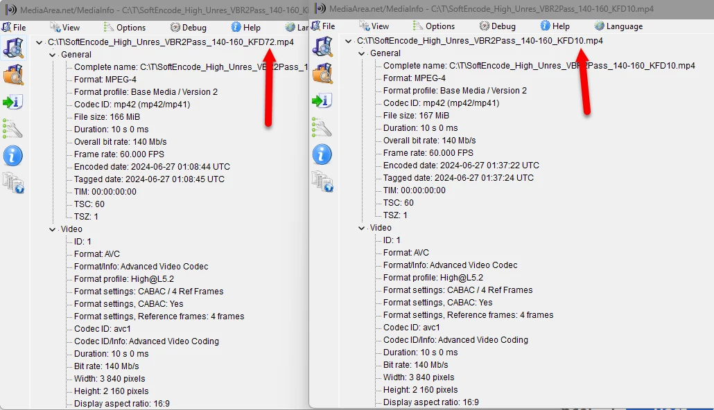But my experiments show exactly the opposite - the larger the keyframe distance, the better the image quality. I've linked some examples below. These are all for an H.264 two-pass VBR encode between 140 and 160 Mbps. I used the "High Unrestricted" profile as well as "Main 5.2" and don't see much difference. I've tried both hardware and software encodes and they also look pretty much the same. The 72 distance is the default and provides the best overall image quality. 10 is a little worse but probably about the same. 1 is horrible. As far as I understand what keyframe distance is, that's exactly the opposite of what's supposed to happen.