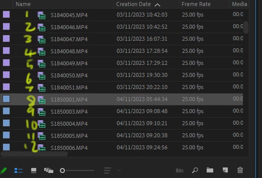 Is there a way to generate a column of sequenced numbers in the media bins (001-100 or such like), say like you would in a spread sheet. Im trying to carry out customers instructions and they have taken the number the camera shows, so clip 01, 02 etc rather than the file name. Sort of as Ive added below freehand. Its gets a bit tedious counting the rows all the time.