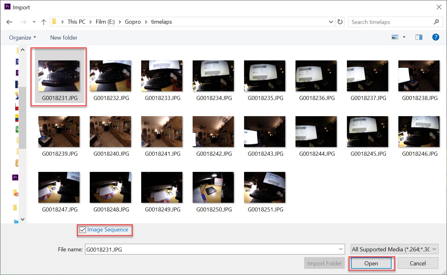 I have 2351 images from a Canon R52 which are 8192 x 5464. I created a new project and imported the frames so they each will consume one frame. I then grabbed the images and dragged them to the timeline. A sequence is created (I'll call the original sequence).