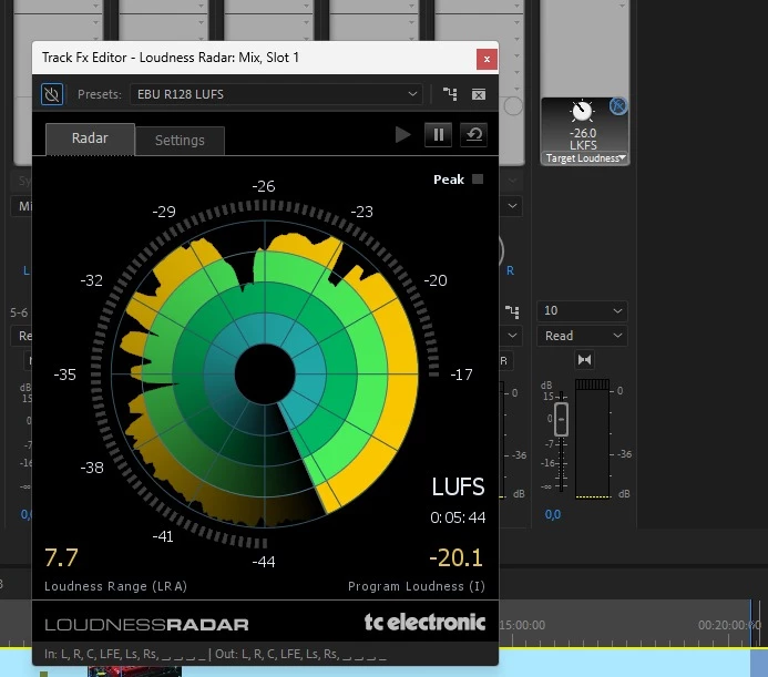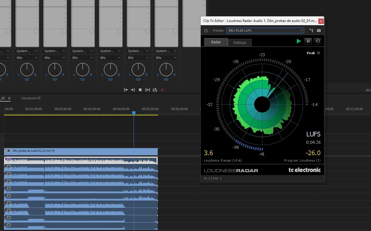 I have a problem that I can't solve and it drives me crazy. I have to make an episode for a TV channel where they request an MXF with ten channels and stereo mix. It must not exceed the EBU-128 standard (-23 LUFS). I use the post-production audio leveled and not exceeding the -23 LUFS. The problem arises when I export them into premiere, the results often differ significantly.
