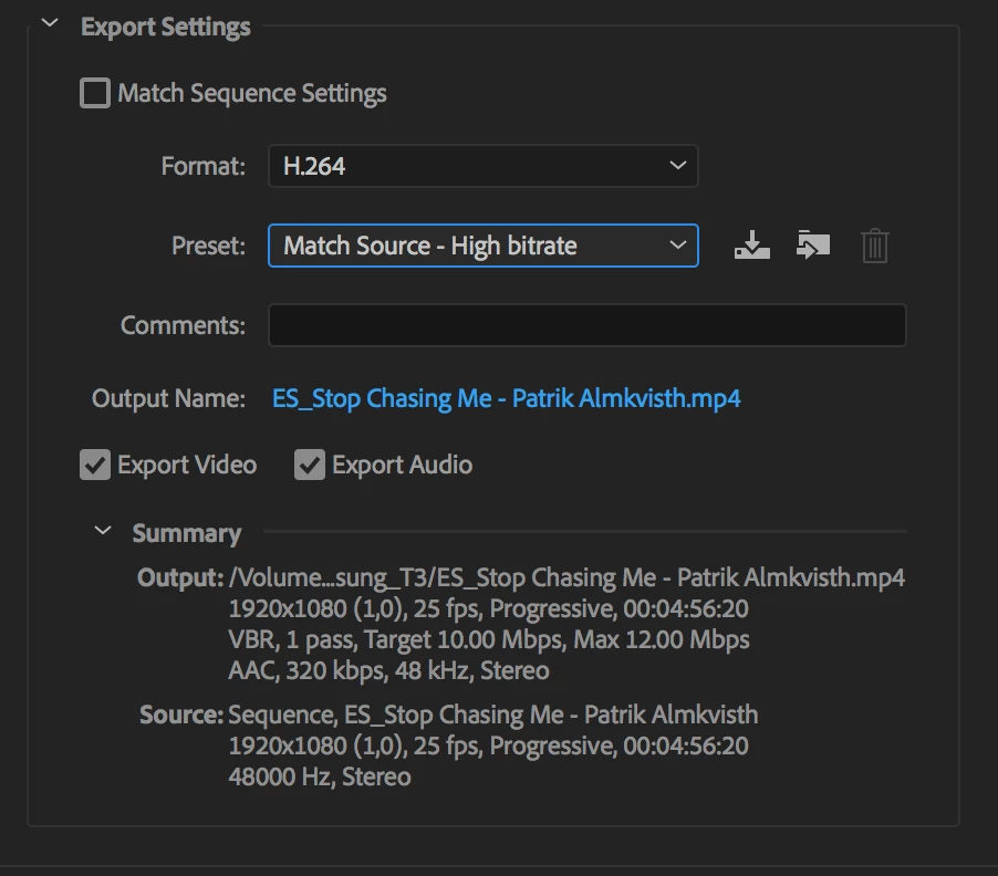 My export options on the linked screenshot.