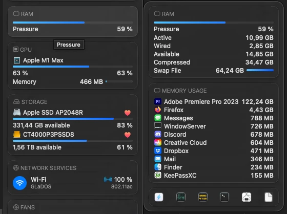 The issue is, after a few hours of editing, an error appear in mac os saying that my memory is full.