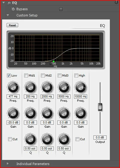 Here's one way to make a clip sound old and low quality. Grab the eq (equalizer) effect in the effects panel and apply the settings that appear in the image below.