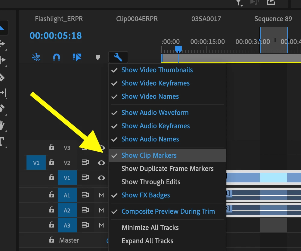 Markers are not visible on my clips on timeline