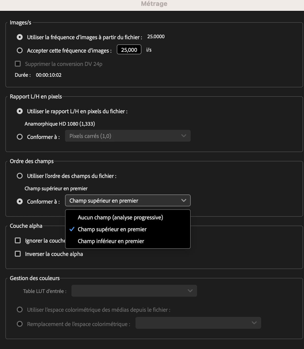 J'essaye de desentrelacer des rushes HDVi (codec HDV3 ; format MPEG Video) dans Media Encoder. (la méthode classique qui normalement fonctionne. Je sais qu'un laboratoire de post-prod a réussi à désentrelacer ces mêmes rushes lors d'un test avec Media Encoder. Peut-être ont ils un plug in ou cocher un réglage que je ne connais pas ?)