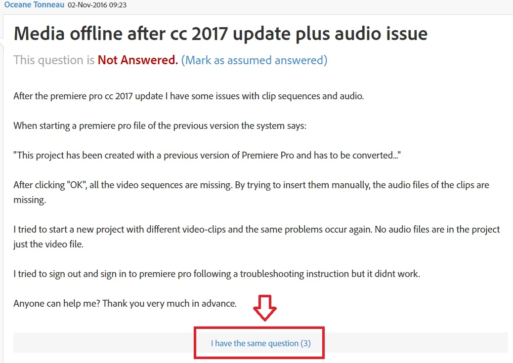 After the premiere pro cc 2017 update I have some issues with clip sequences and audio.