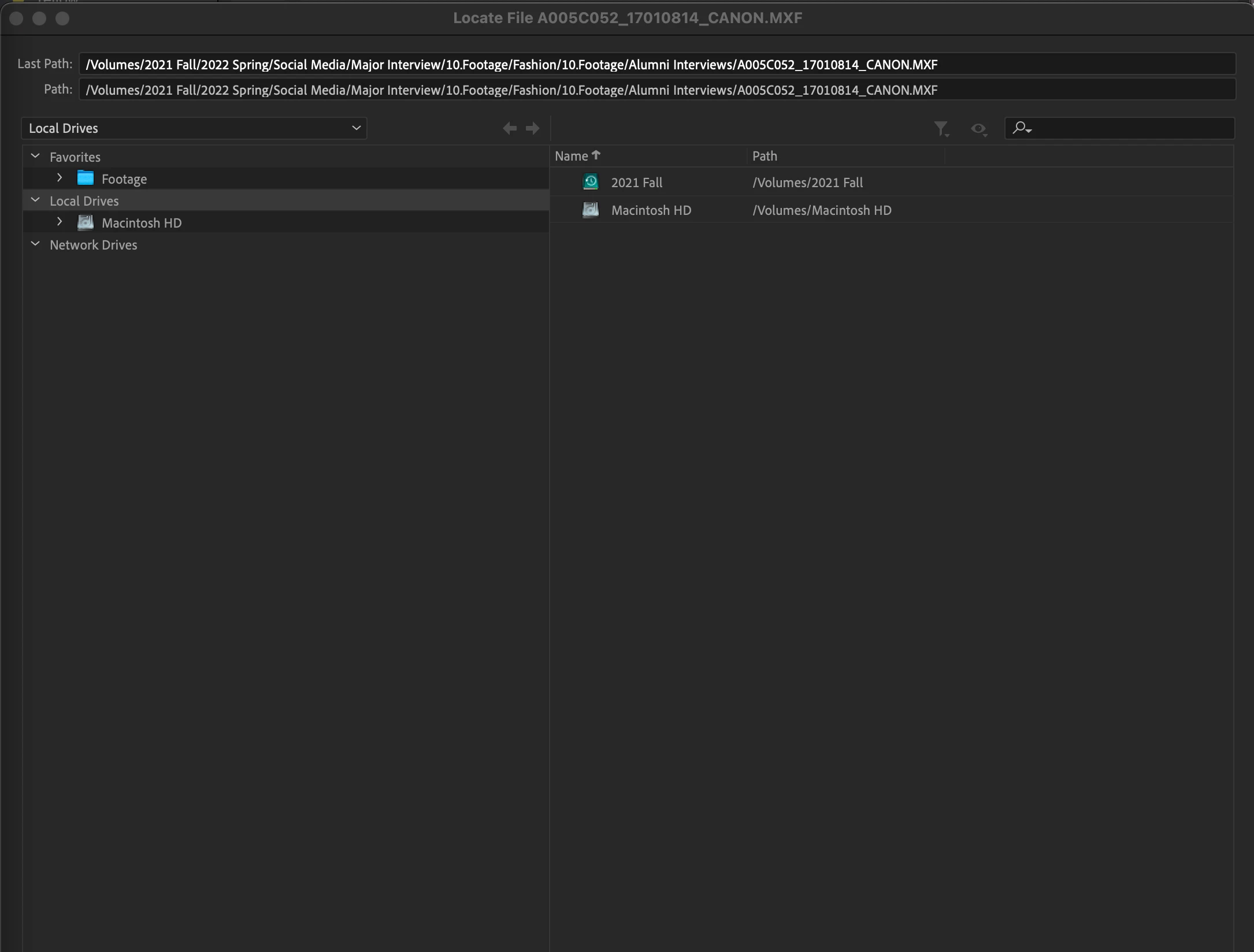 Media offline and trying to relink but the External HD is not showing up
