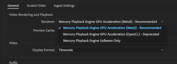 Ensure the Mercury Engine GPU acceleration (METAL) is enabled