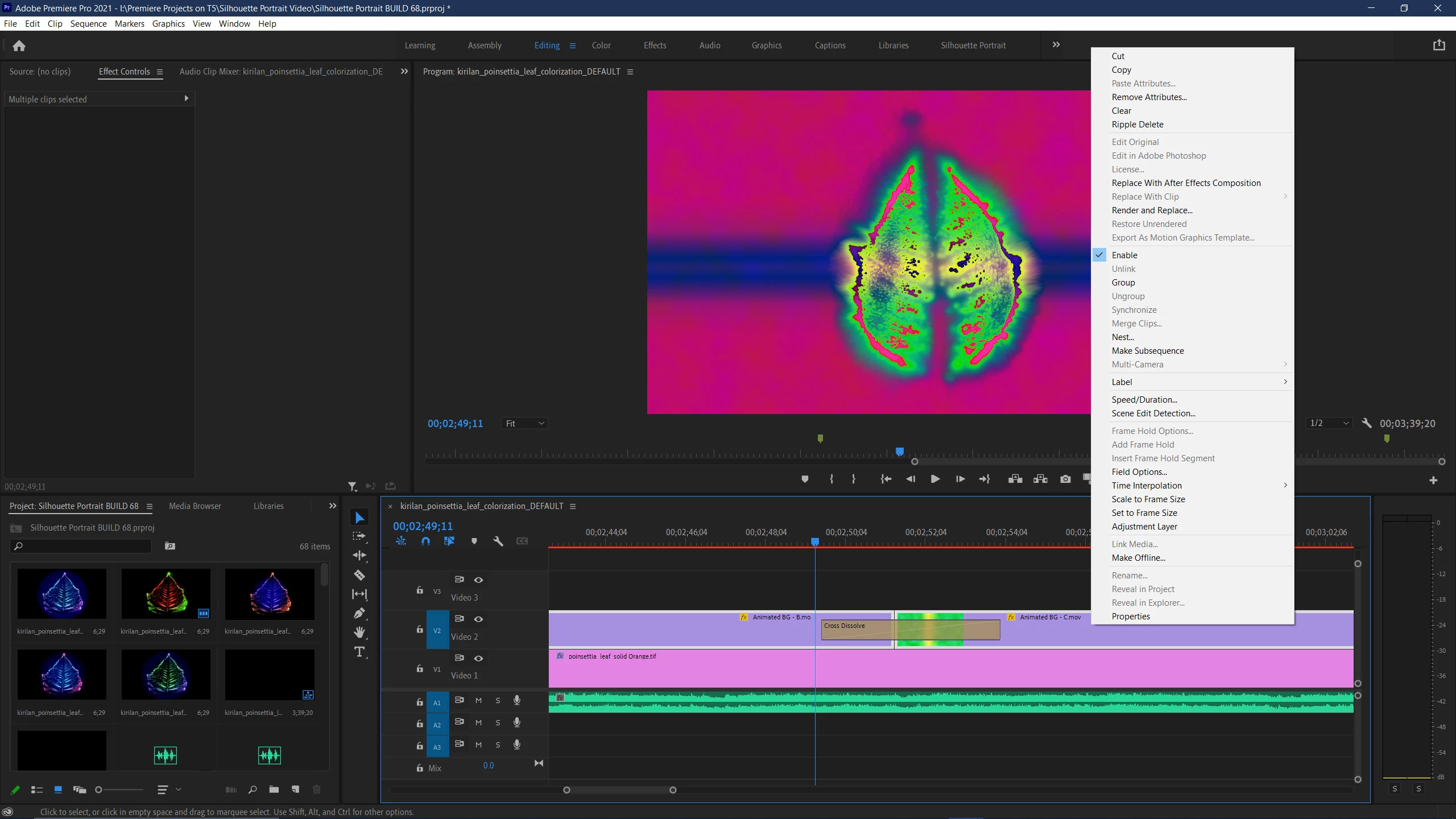 Per the attachment, I want to merge the two clips in Video 2 and preserve the cross-dissolve between them. Both are selected, but when I right-click on the clips, Merge Clips... is grayed out.