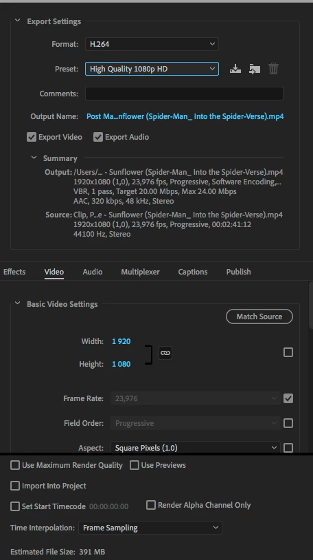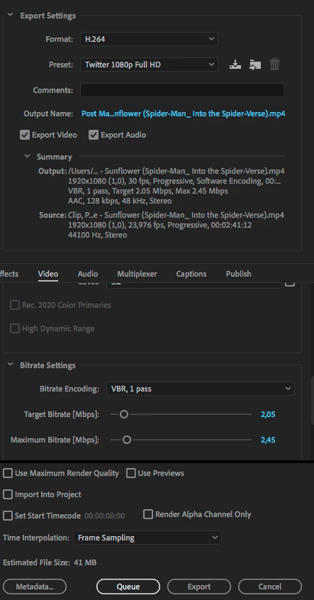 The combined file should be around 30 MB in size and have the same resolution and frame rates as the original files.
