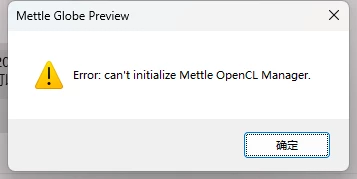 Mettle Globe Preview - Error: can't initialize Mettle OpenCL Manager.