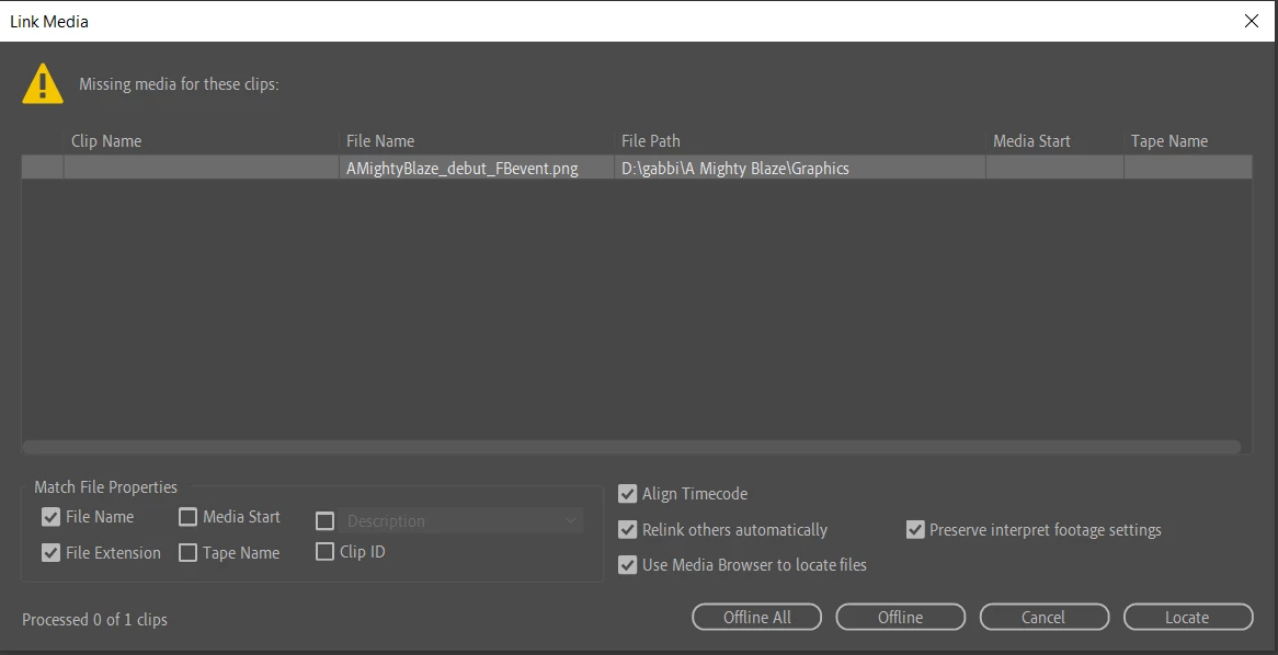 When opening a project in Premiere Pro, it is unable to find a missing media clip that is not used in the current project. It was a clip part of an old version of the project, and I can't figure out how to delete it from this project, so that every time I open Premiere, I am not asked to relink to the missing clip. I've tried relinking the file to other files on my computer, but I receive a file import error message no matter what. I think it's also causing errors once I start editing, because there are various other instances of the program not functioning while editing this project. One of the majorly inconvenient errors is being unable to move the playhead. Also, when I hold down on the tools in the toolbar, I don't see other tool options pop up like normal.