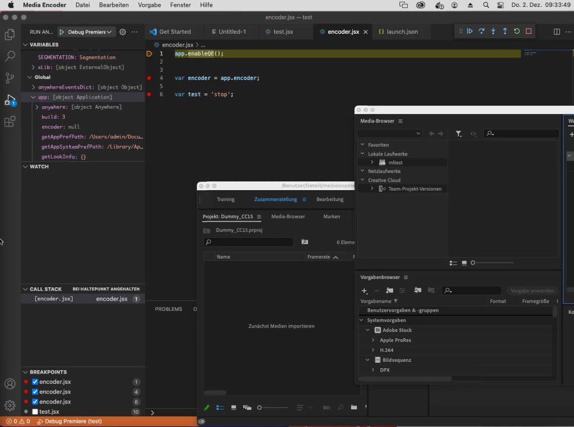 This object from ExtendScript "app.encoder" is null.