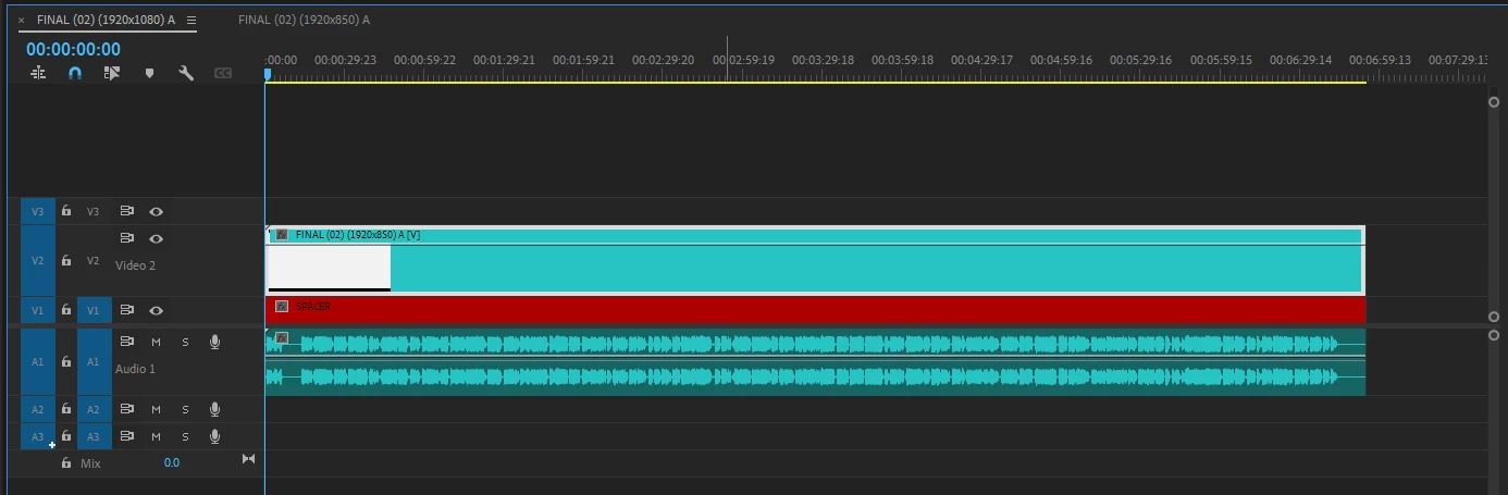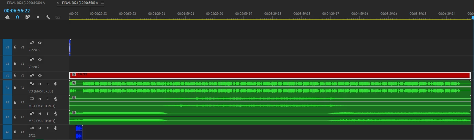 Here is the nested sequence; all the video edits would've been in the "Video 2" track. The light leak transition is the blue clip at the start of the "Video 3" track, and you can see all the final audio clips are there as well.