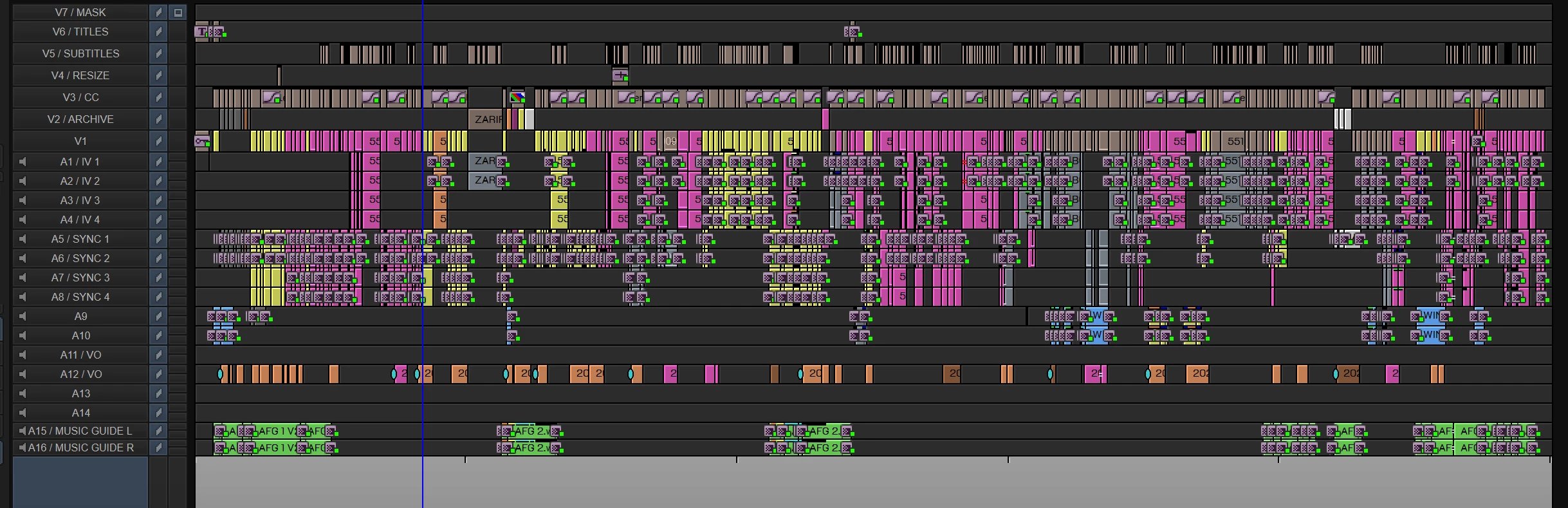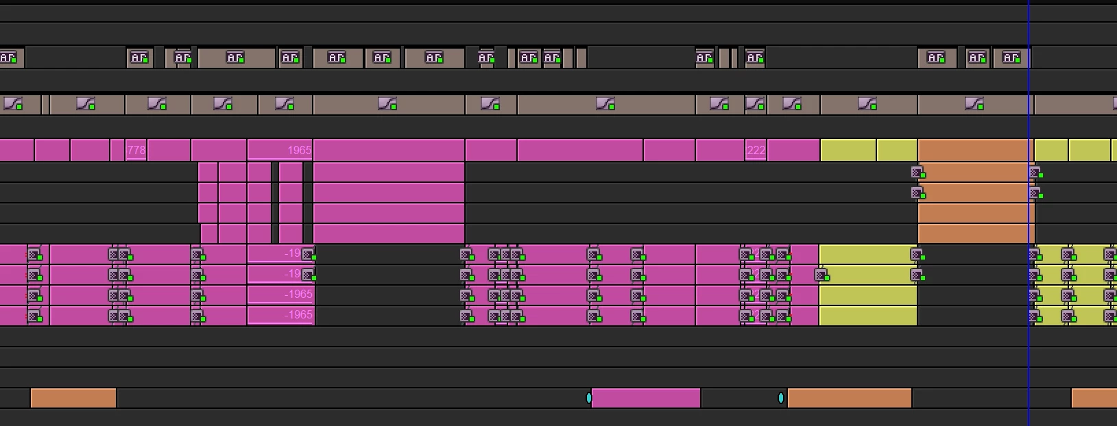 In Avid, I use audio transitions for Level Mixing and for Short audio transitions (softening hard audio edits). Here's a picture of a typical sequence in Avid for a fairly simple edit.